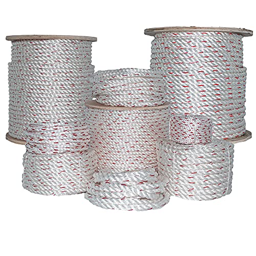 redbubble SGT KNOTS Twisted Poly Dacron Rope - 3 Strand Line with Polyolefin Core for Marine, Commercial & DIY Projects (1 x 600ft, White)